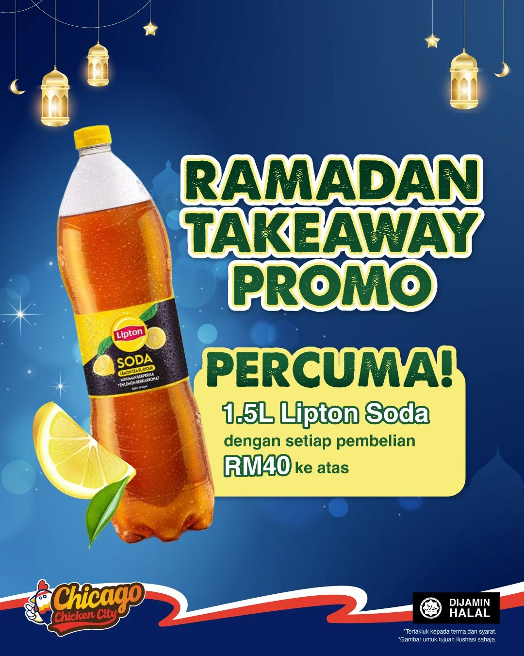 Istimewa Ramadan ini! 🌙 Dapatkan Lipton Soda 1.5L PERCUMA dengan mana-mana pembelian takeaway RM40 & ke atas di semua restoran CCC.