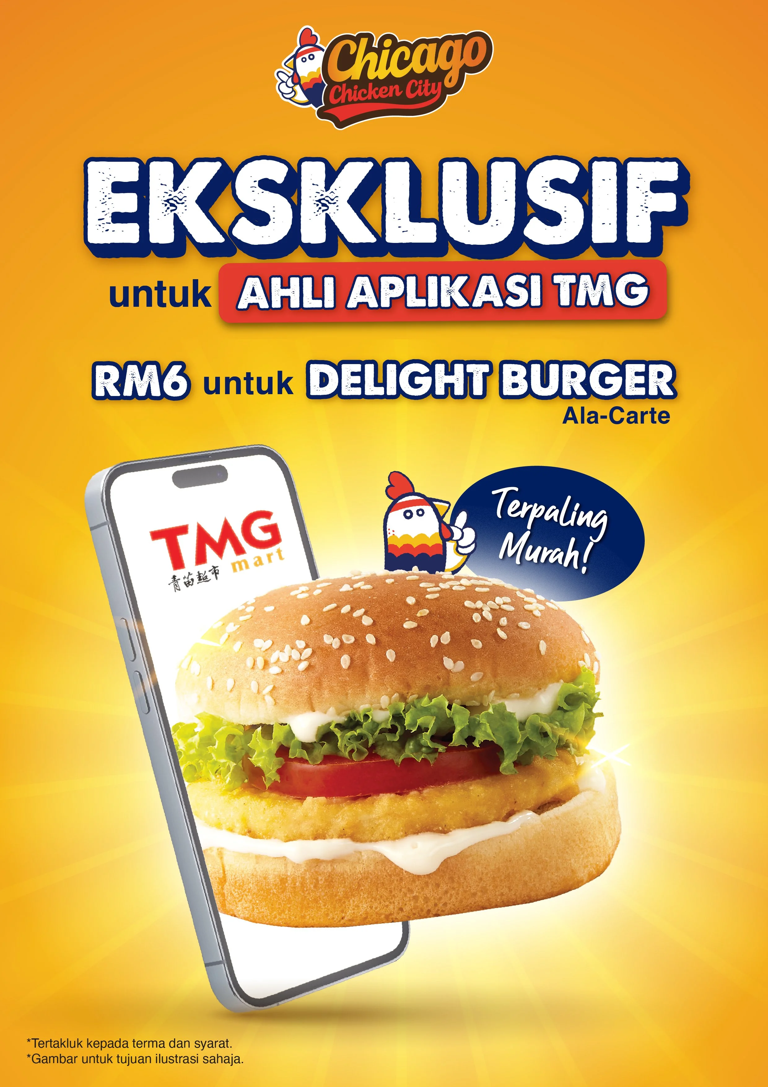 Wow! Hanya RM6 untuk CCC Delight Burger 😍🍔 Eksklusif untuk ahli aplikasi TMG sahaja 🤳 Cepat redeem segera!